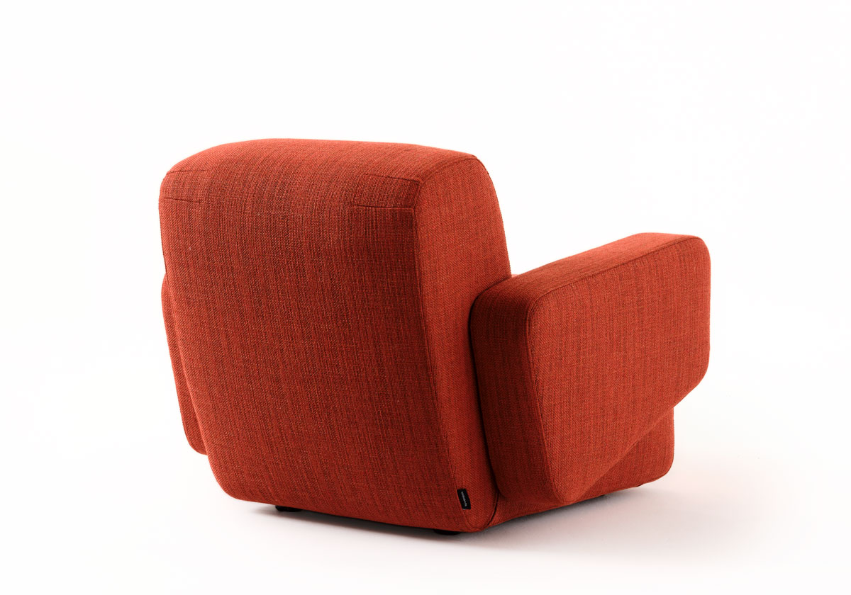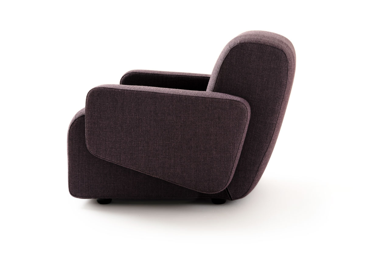 La poltrona Flow è costruita attraverso masse fluide, prive di spigoli, pensate per dialogare con ambienti moderni e raffinati.